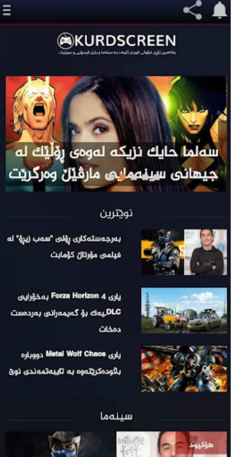 کوردسکرین یەکەمین تۆڕی فراوانی کوردی تایبەت بە یاری ڤیدیۆیی و سینهما و میوزیکی کوردستان و جیهان