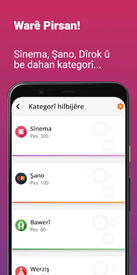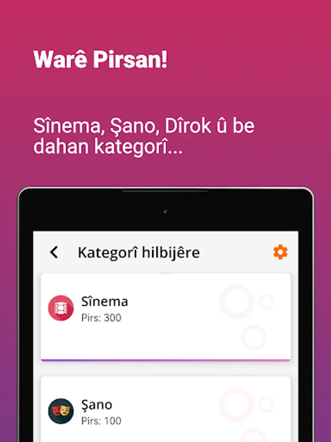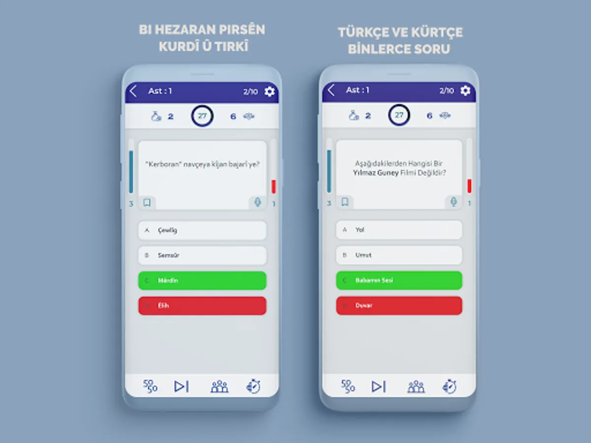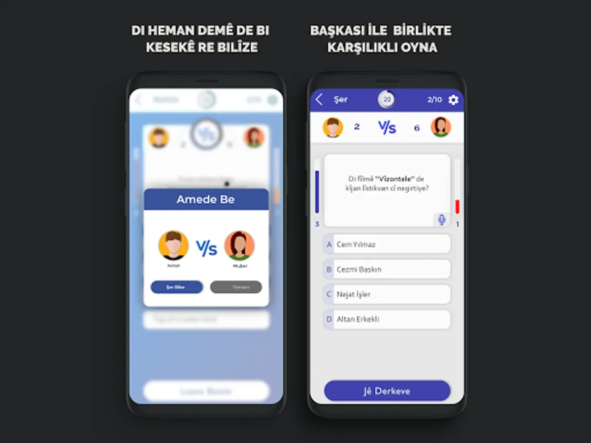 ★ Kurdish and Turkish General Culture Quiz is a new game with thousands of Kurdish and Turkish questions that you will compete with general cultural knowledge.