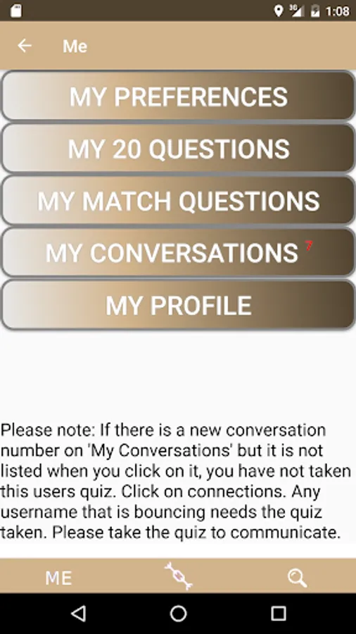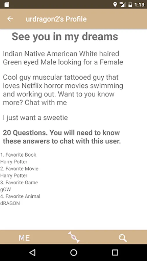 Security and scams. All information is tunnelled to our database and encrypted. Also in order to message a user there is a small process. 1. you need to connect 2. they need to accept you. 3. You both need to take a quiz on each others profile. There is a 20question part of the sign up process that must be completed to match with people. You also have to fill out preferences. This generates a 5 question quiz multiple choice that gives you access to chat with this user. After the other user takes your quiz you can message one another. This alleviates bots and scams as it takes time and cannot be programmed to take as the quiz is completely random. You can have a warm feeling that a person is indeed interested in you since they took the time to read your profile and take a quiz to chat with you.