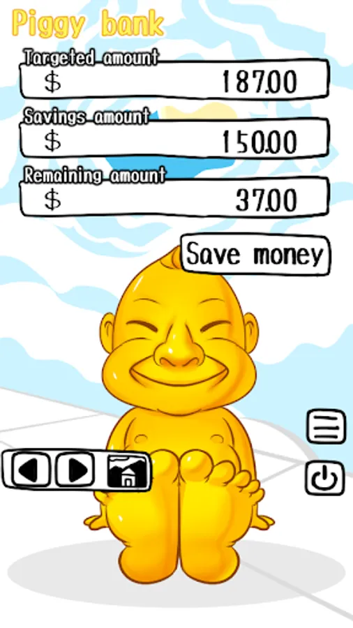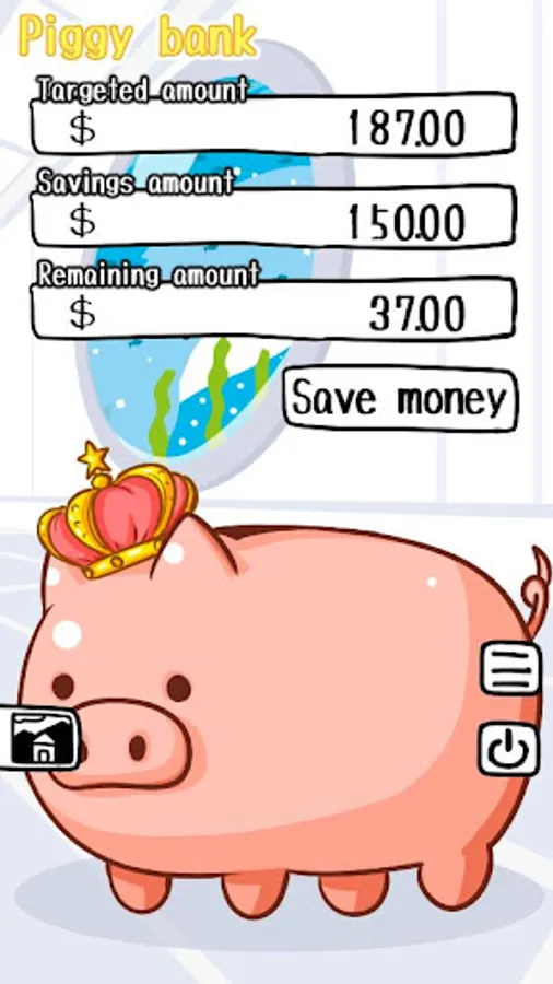 It is an application that simply plays virtual savings, but it is characterized by saving money with various landscapes by selecting characters and choosing backgrounds.