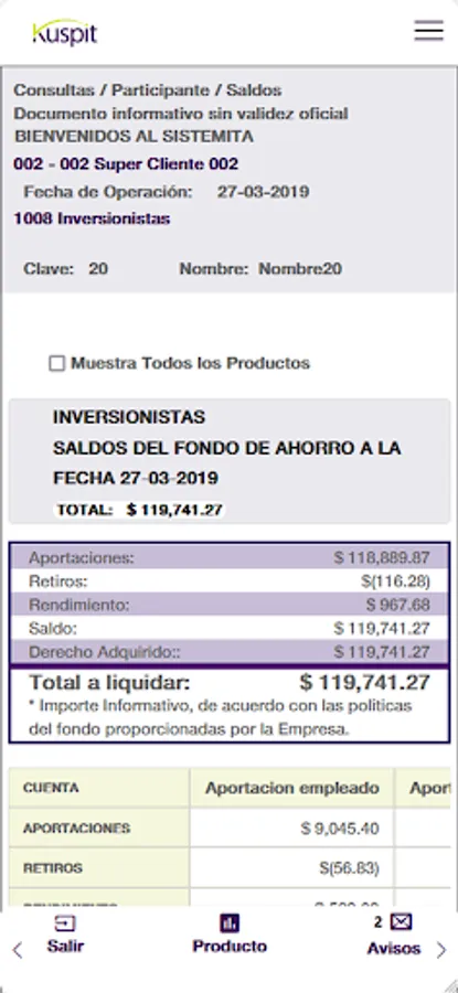 Automation of Pension Plans, Savings Funds and Savings Banks, reducing administrative burden through individualization of contributions and returns, loan management, generation of account statements and monthly reports.
