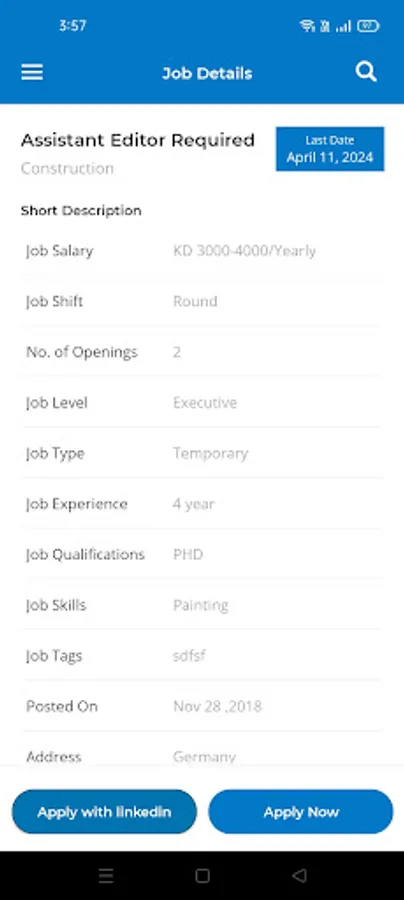 يعرض وظائف الكويت بشكل يومي داخل وخارج الكويت حيث يعرض العديد من الوظائف في الكويت يوميا لجميع التخصصات والمهن والأعمال ويوفر للشركات والراغبين في العمل في الكويت سرعة الاتصال المباشر من خلال التطبيق ويساعد الشركات الحصول على عمل متميز من خارج الكويت