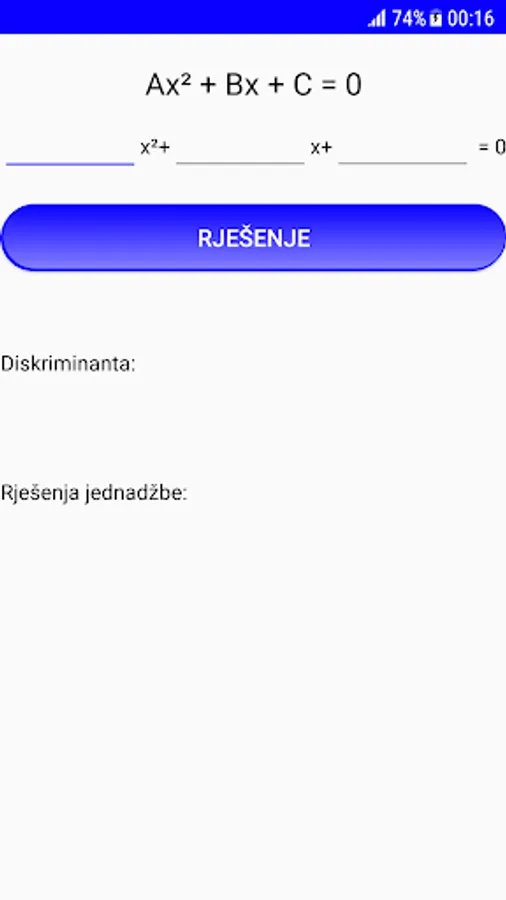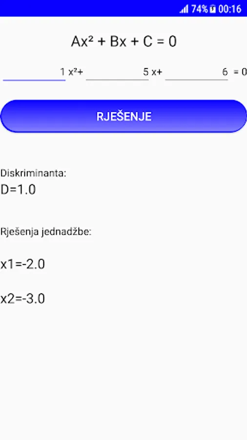 The application accounts for the discriminator and the solutions of the quadratic equation.