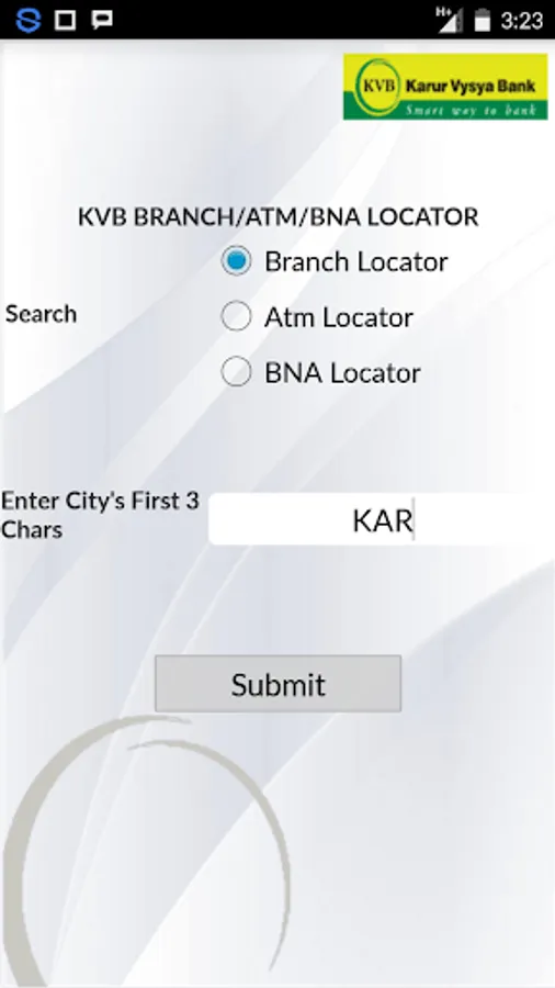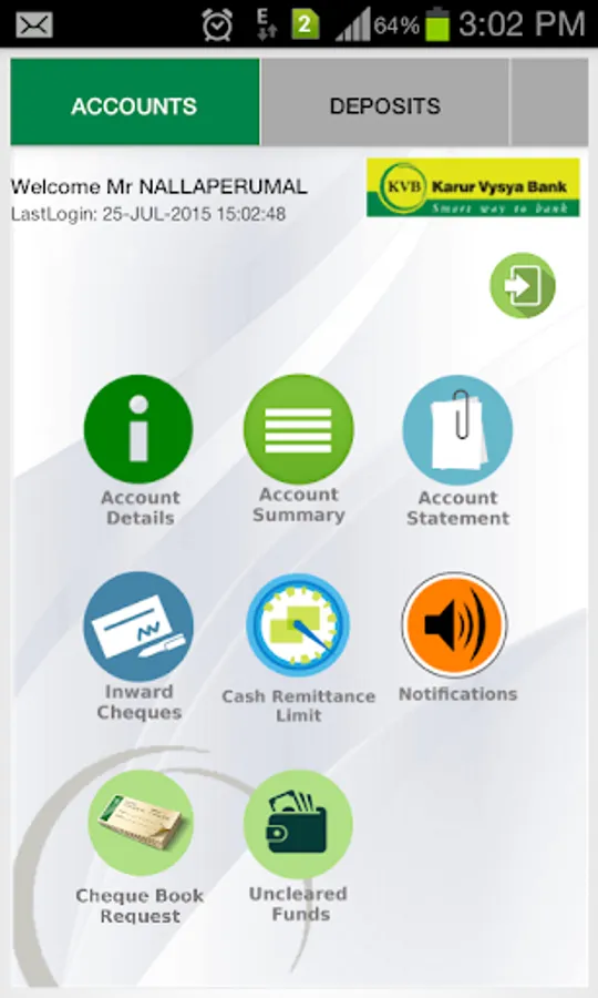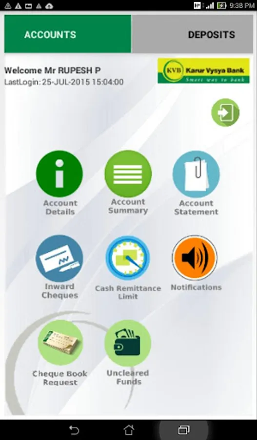 Other options include Branch/ATM locator , Cash Remittance limit , Notifications, Cheques book request , Uncleared funds are included .