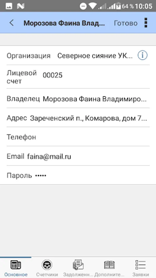 The mobile application is designed to work with software products "1C: Calculation of rent and accounting for housing and communal services" or "1C: Accounting for SNT". Before using the application, make sure that your management company uses one of these software products and can receive data from the mobile application.