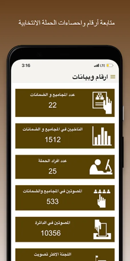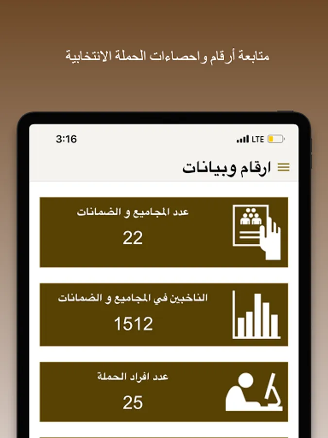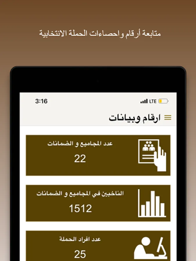 An electronic system for managing the electoral process in the Kuwaiti Municipal Council. It provides voter data so that the candidate or his representative can manage all stages of the electoral process with ease and safety .. Technical assistance is the most form of electoral assistance provided by "Baladi" application. To make the system more vital, we made the application work on all electronic operating systems.