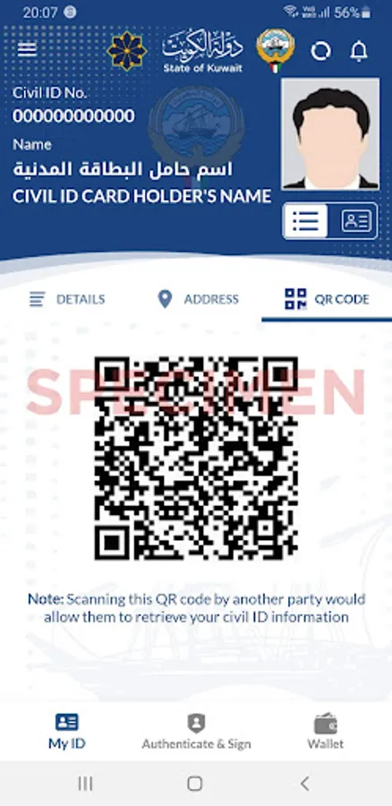 This App provides citizen and residents in the State of Kuwait a digital ID which could be used for the following purposes and more:
