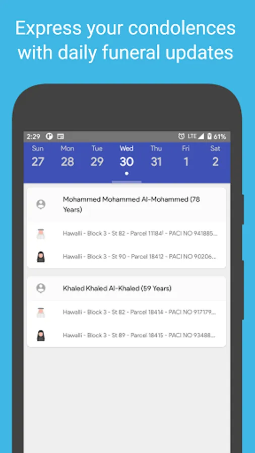 • View funerals and its details including the time and location for each funeral