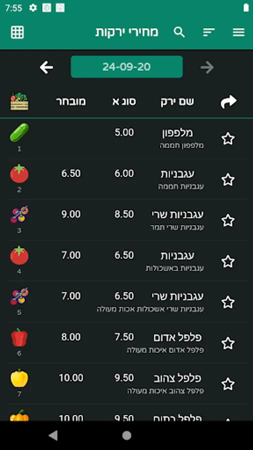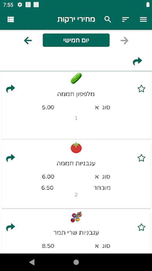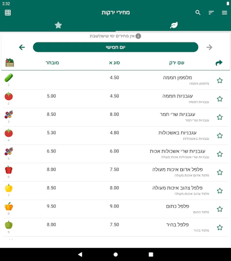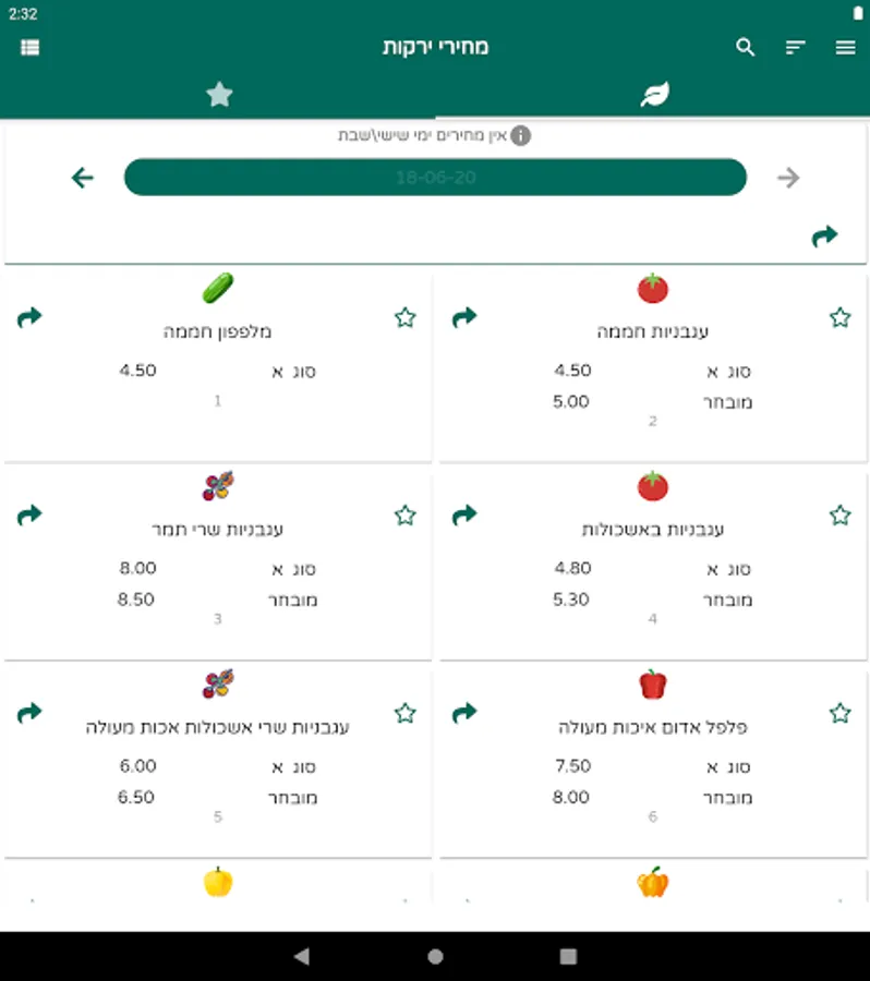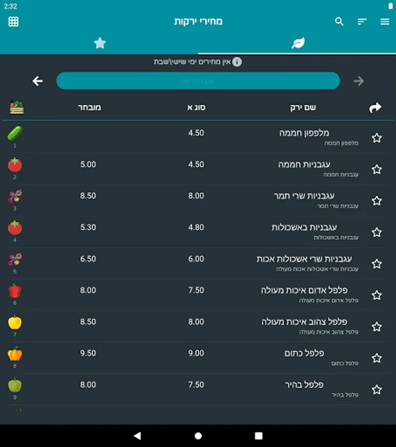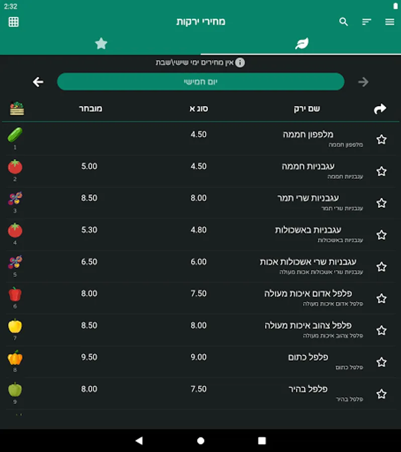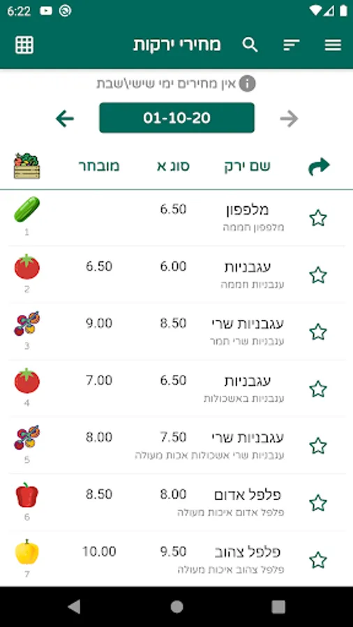 Prices of vegetables are updated on Sunday morning through Thursday.