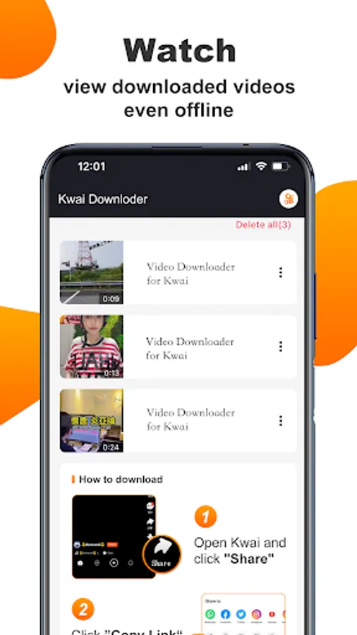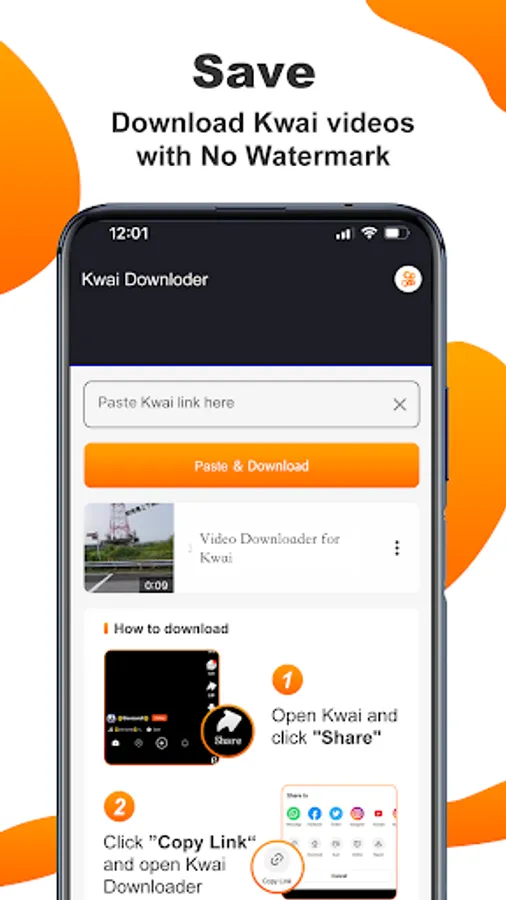Video Downloader for Kwai - Free & No watermark app helps you save videos without the watermark in simple steps.