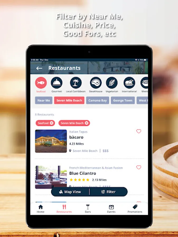 Cayman’s best restaurant app allows you to review 100s of menus, and find culinary events & promotions, and book tables – all updated daily by Cayman Good Taste, the Island’s best restaurant guide. This app is the most up to date and comprehensive resource for Cayman’s culinary scene and links to the best method for booking or requesting tables at restaurants. It provides detailed information related to restaurants, bars, menus, food events and promotions, and its advanced search and filtering capabilities enable you to find your ideal restaurant and get the most from the Culinary Capital of the Caribbean!
