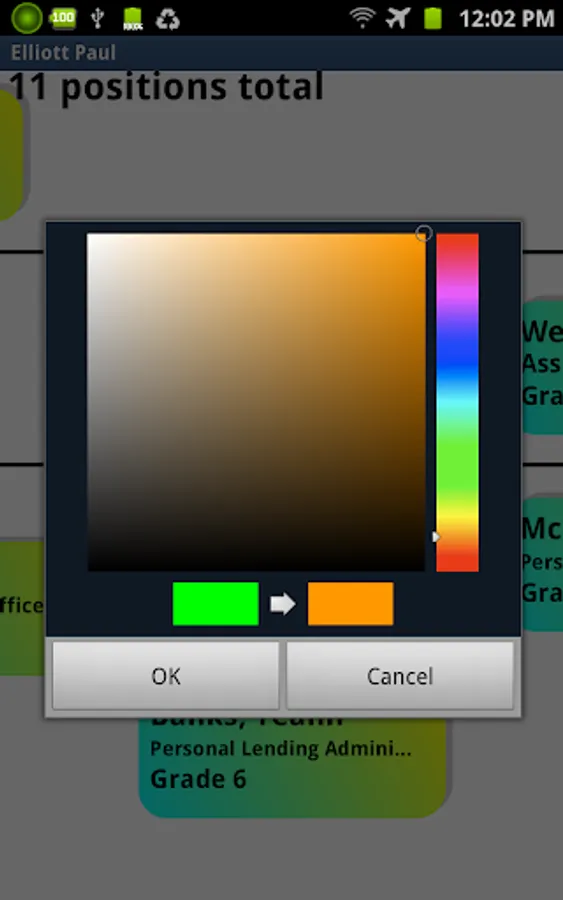 * User preferences to set color for a single rectangle, a family of positions, or the entire chart