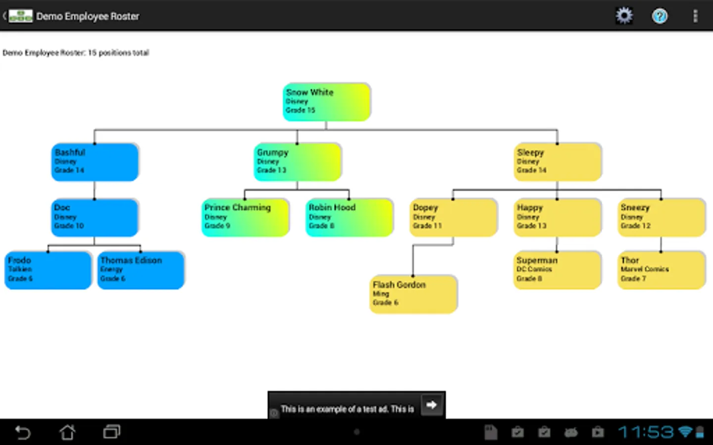 Export and share organization charts, as well as have them stored on the Android device for access any time. We wanted to make a simple app that would take staff or position data and make a portable organization chart. We hope we've managed to do so. If you find issues, please let us know via the email address below; we'll try to fix them as fast as we can.