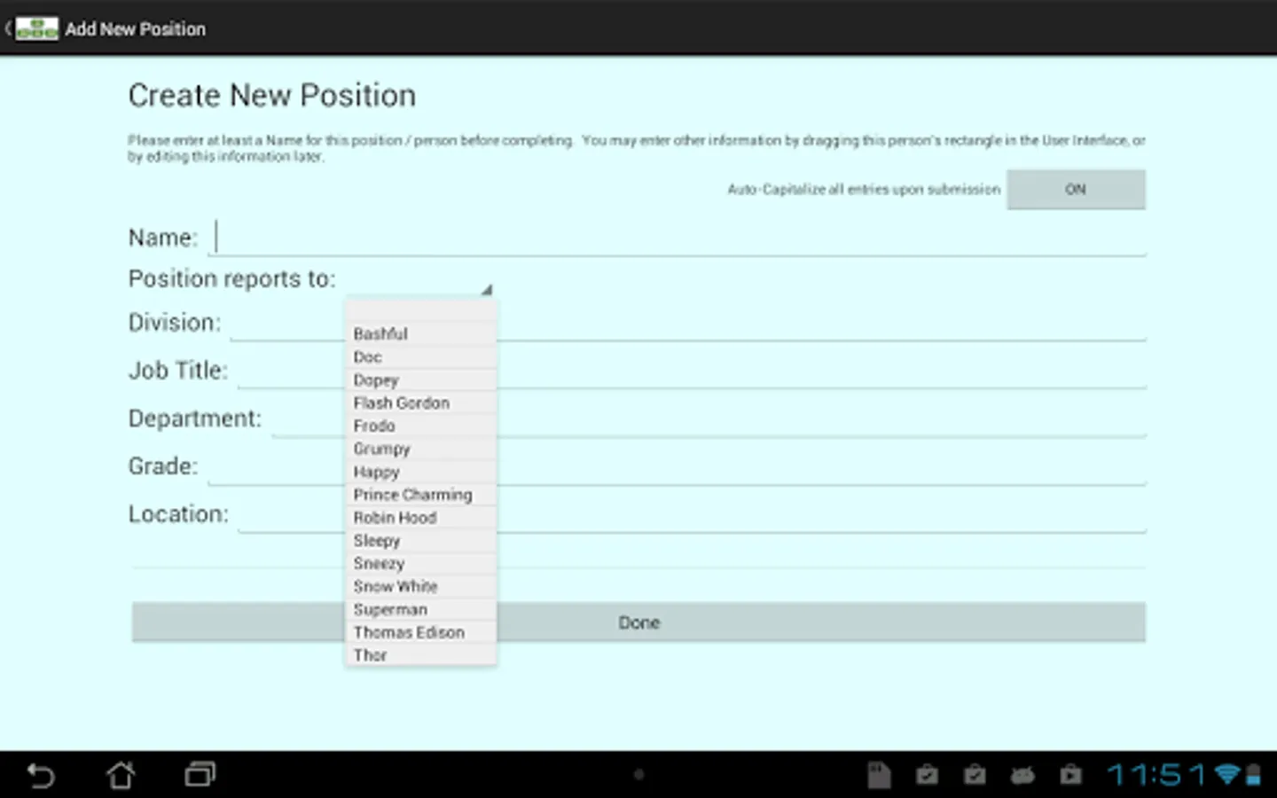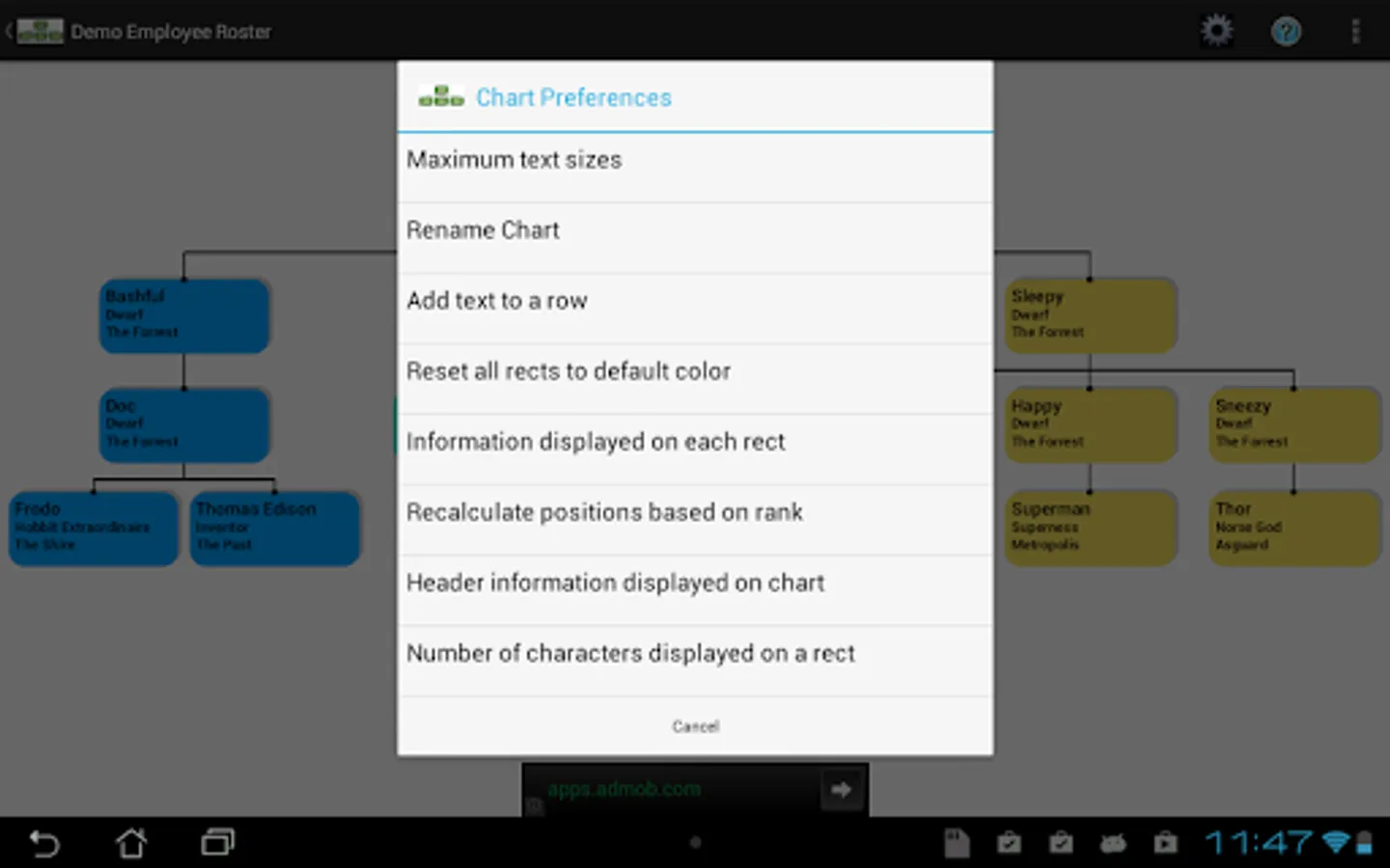 Org Charts is new app that enables you to easily create -- or automatically upload -- beautiful organization charts on your Android tablet or phone. Start from scratch, or upload your company's roster or positions from an Excel spreadsheet and Org Charts will automatically position and display your chart.