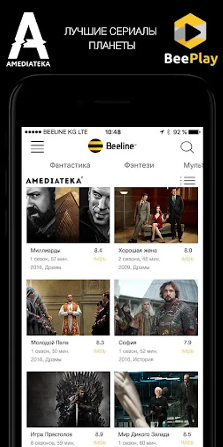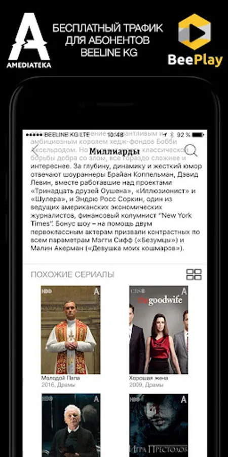 The only app in Kyrgyz Play Store for online viewing of the best series of the planet *. Thousands of users have already installed Beeplay app and enjoy watching online Russian and foreign TV series.
