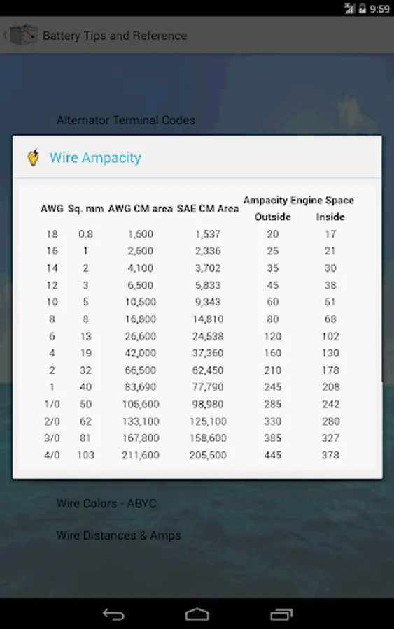 An information section provides many useful bits of knowledge, such as wire size charts, definitions, battery life tips, a power (Watts, Volts, Amps) calculator, etc.