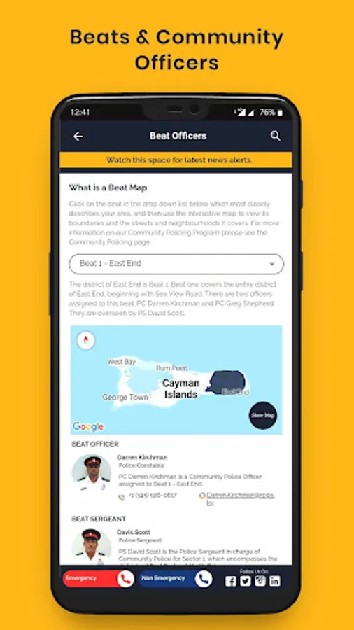 The app also places the names and mobile numbers of our Community Beat Officers at the fingertips of the public through our “Beat Officers” button. An interactive beat map describes the beats around the islands, alongside the photos and contact information the officers assigned to them. A cornerstone of our community policing ethic is to make ourselves accessible and responsive to the community members and their concerns. This mobile application only enhances this accessibility several times over, and fosters the kind of real connection between officers and community members that can solve crime.