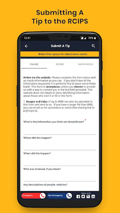 In addition to being better informed, this mobile app also empowers the public to communicate with police. The “Submit a Tip” feature is a direct channel for the public to use their phone to send police text, photos or videos of up to 8MB of any information or activity that they think the police should know about. This information can be sent anonymously, but if the sender wants a response there is an option to leave contact information. There is no way for police to determine the sender of this information unless it is disclosed to us in the form provided. This feature, if widely used, promises an exciting and convenient new way for the community to build a stronger relationship with police and work with us to solve crime and make our islands safer.