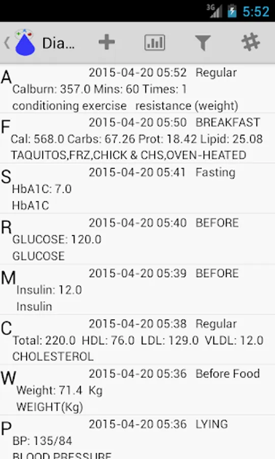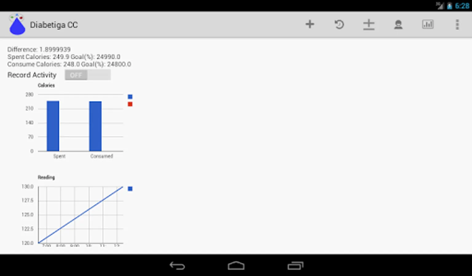 Diabetiga CC is a Diabetes Tracker Application. Which tracks your Glucose Readings, Medication or Insulin Doses, Food intake, Activities, Exercises, Blood Pressure (BP), Heart Rate, Weight, Cholesterol levels, Lab Reports. Diabetiga cc gives the data as a list for easy comparison. Diabetiga cc also provides the data in Charts and Graphs. Diabetiga calculates various Dose calculations like Carbohydrate Coverage Meal, High blood Sugar Correction Dose, Total Mealtime Dose, Bolus Correction, Daily Insulin Requirement, Controlled Dose, Ratios. Diabetiga also calculates Calculates Glycemic Load, Hba1c-glucose, Corrected Calcium, Hidden Calories, Diabetes Risk Assessment and Mody Calculation. It has also does calculates your Fitness Parameters like BMI , BMR, Fat Percentage, Frame Type, Body Shape and it recommends Ideal weight, Calories required Daily, Water Requirement. Going a Step further it also predicts your Life span, Biological Age and Mental Age. It provides your Physical Fitness Profile, Emotional Fitness Profile and Social Fitness Profile. It comes with Count up and Count Down Timer