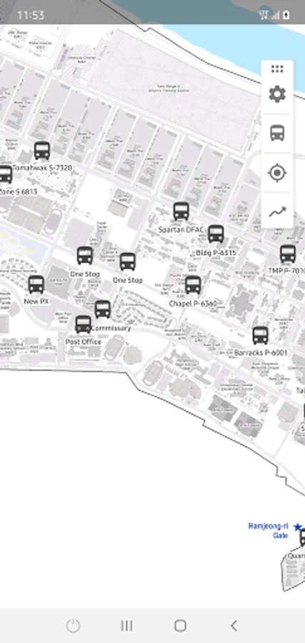 * As there's no exact bus stop locations shared by USAG Humphreys at the moment, some of them might be marked incorrectly. Please feel free to report any wrong information.