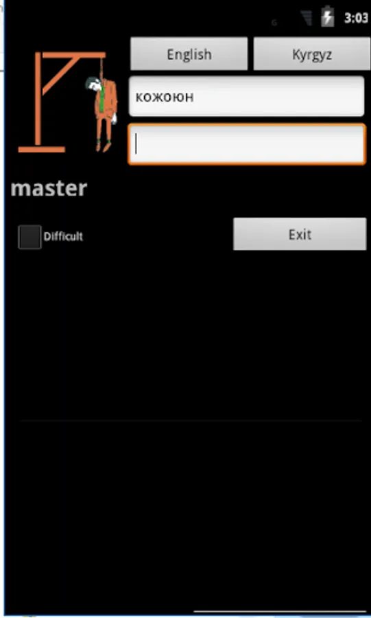 The word to guess is represented by a row of dashes, giving the number of letters. If the suggested letter occurs in the word, it is displayed in the correct position. If the suggested letter does not occur in the word, one element of the man it drawn. The game is over when the word is complete, or the hanged man is fully drawn.