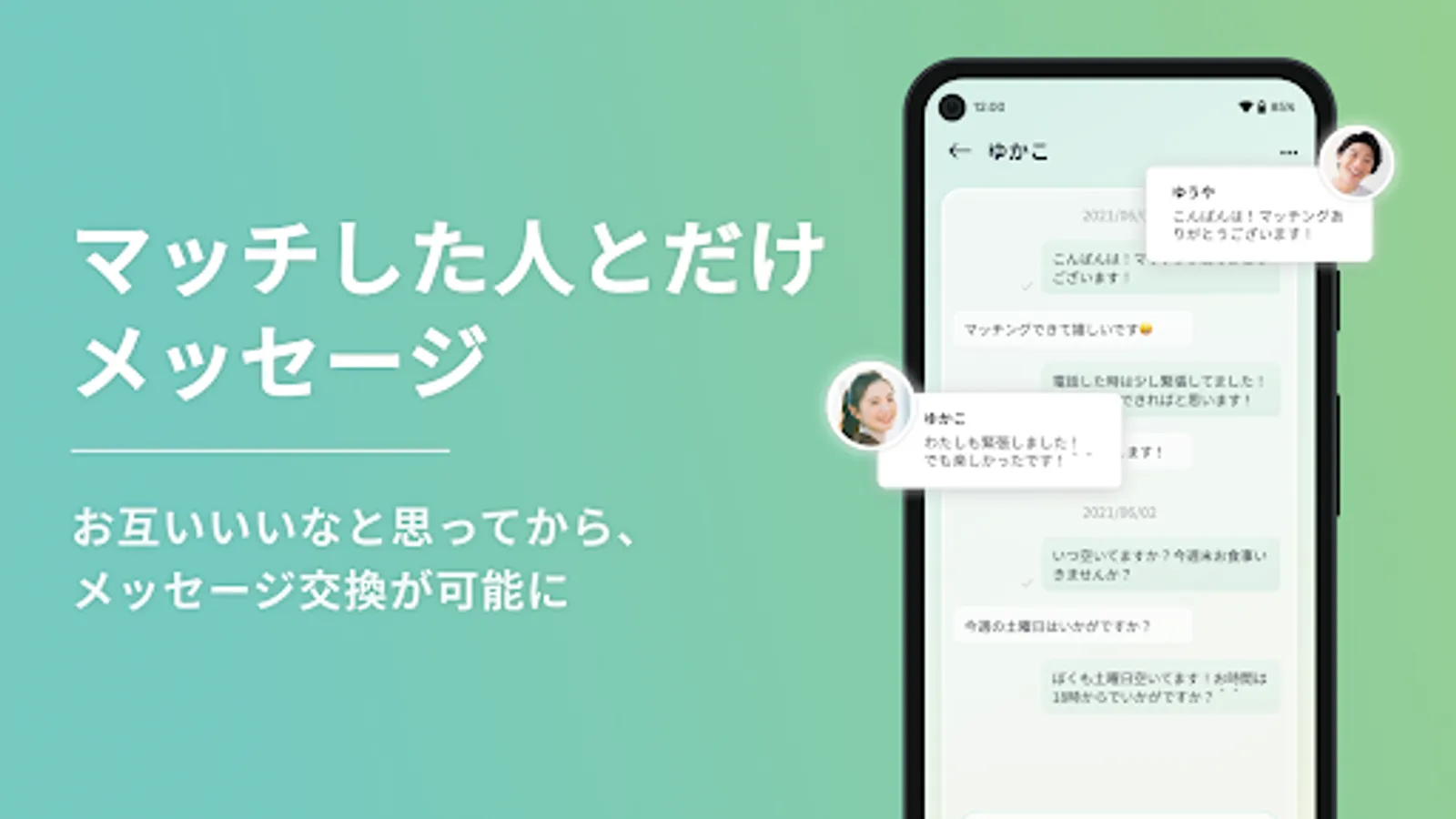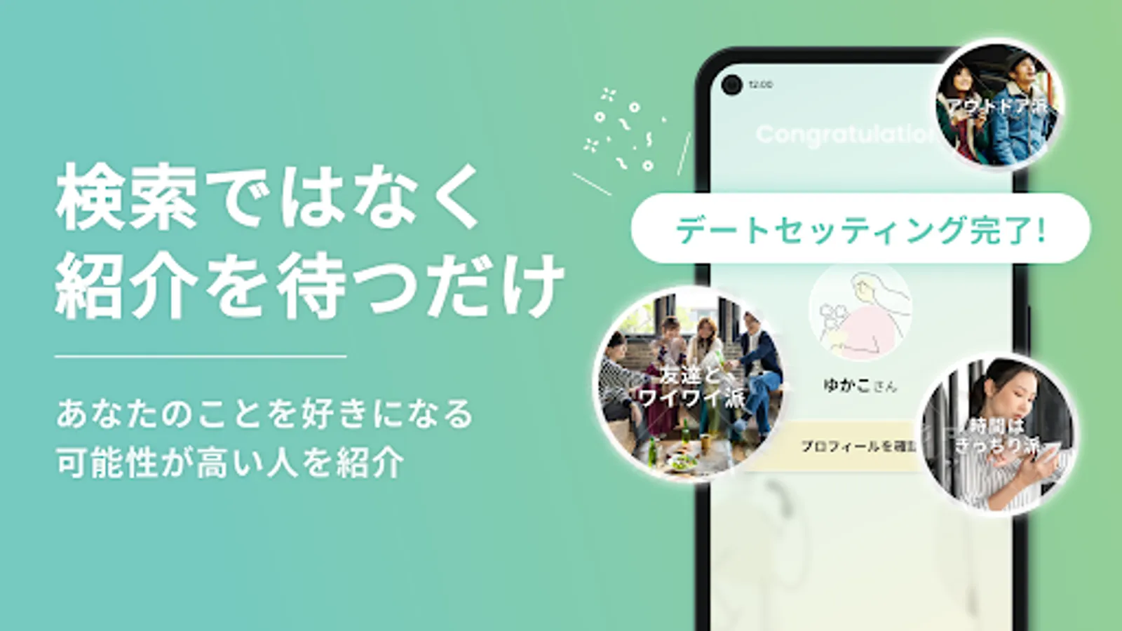 Matching app (marriage / romance) This is a matching app for people who are tired and want to have a relationship with a partner who can seriously think about the future. Just by registering for free with the app, the app will introduce you to the person who is serious about love and is the best for you, and you can make a call date.