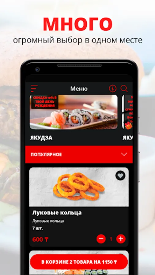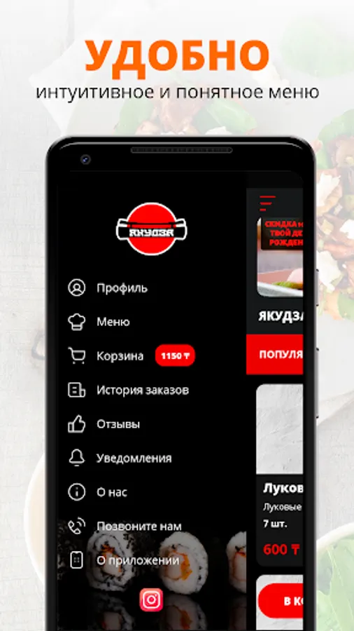The Yakuza app is a convenient way to order food to your home or office! We prepare our dishes from quality fresh ingredients and deliver food in Aktobe quickly and carefully.