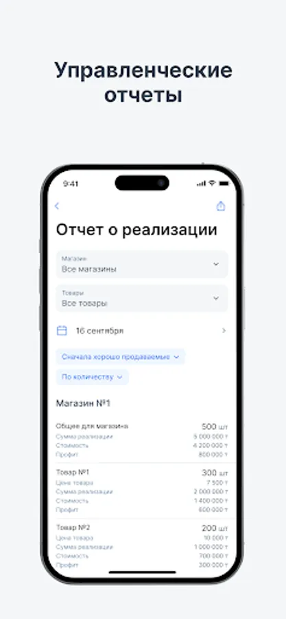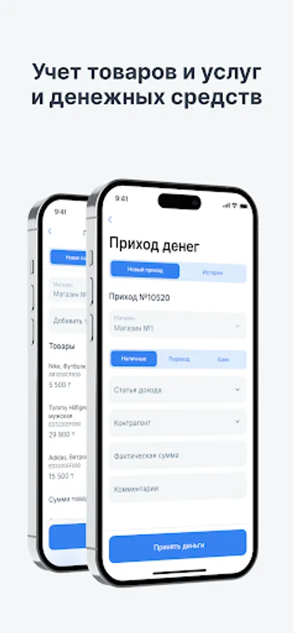 - Accounting for goods and services (receipt of goods, movement of goods between warehouses and outlets, sale of goods and services, the ability to quickly sell (for catering and grocery stores), the ability to generate a commodity report in the context of stores and outlets), the ability to view online balances of goods at the beginning and end of the period (hour, day, week, month, year), receipt and sale of goods and services.