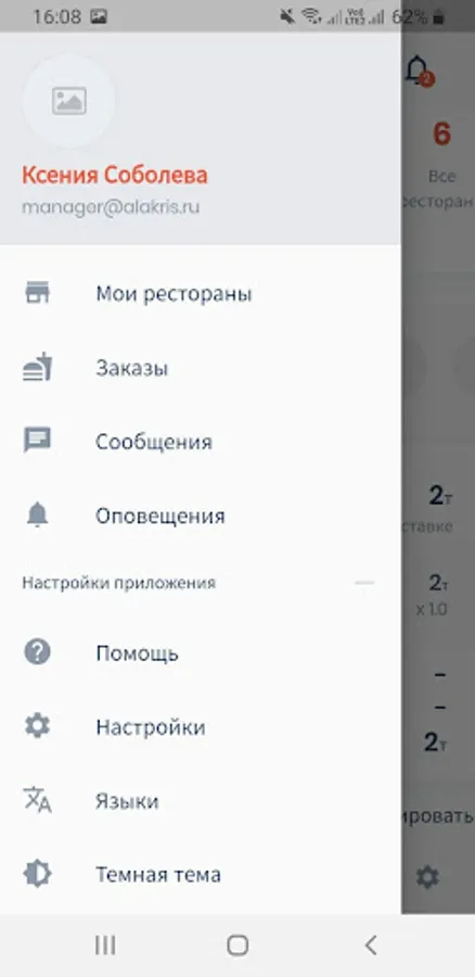 An application for controlling delivery from an institution to a client. This application is designed to manage orders of the Aist Dostavka service