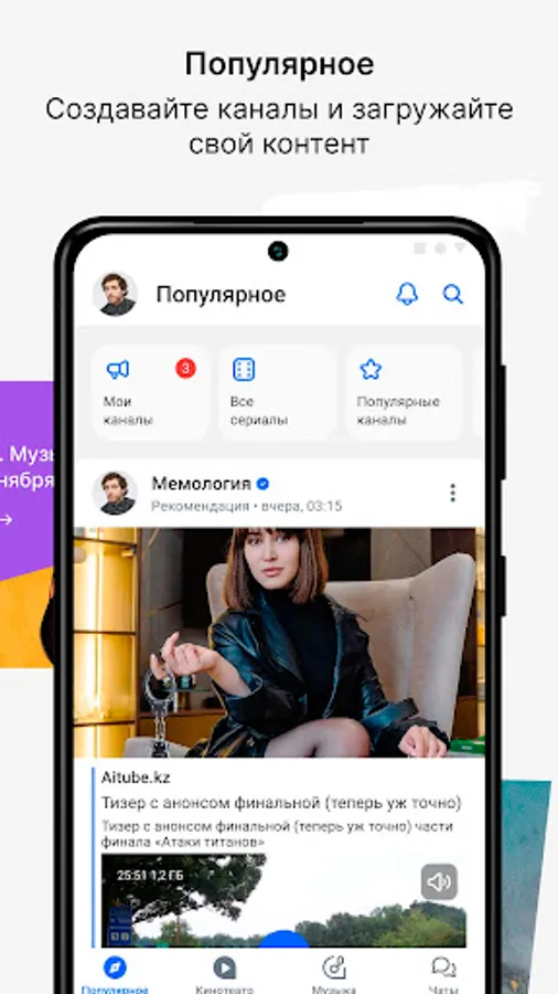 Install our application to watch your favorite TV shows, Kazakhstani bloggers, vines, stand up and much more from the best local producers for free. Our platform has brought together hundreds of authors and projects!