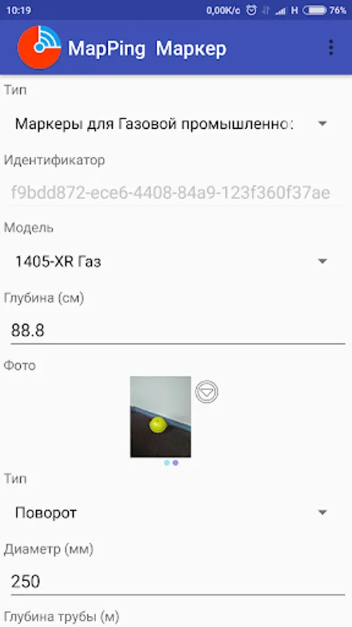 Application to work as part of a program complex MapPing, designed for labeling and imaging of underground and ground communications using markers and locators 3M ™. MapPing Android provides a visualization of the data laid down markers to facilitate the search and identification of communications, as well as for inclusion in the system of coordinates pledged markers and additional data linked to the ID token. When the application interacts with the server part MapPing, which requires an Internet connection.