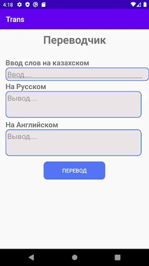 The application was created for the purpose of training and is purely educational in nature. Criticism and ideas for further development are welcome. This program changes the letters of the Kazakh Cyrillic alphabet into the Kazakh Latin alphabet and implemented a certain translator of common famous phrases.