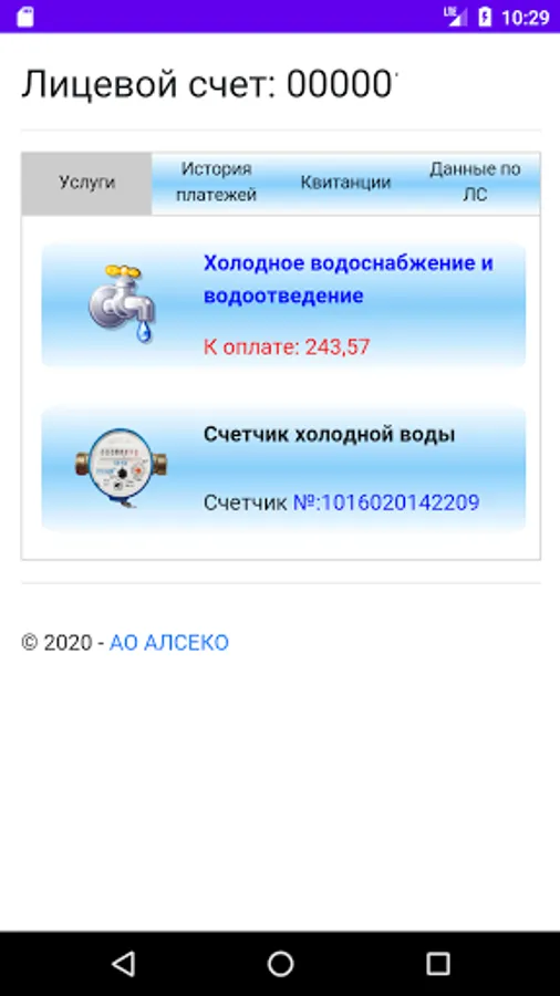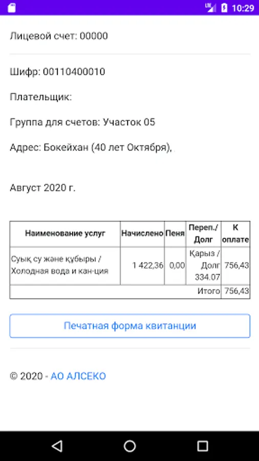 "Personal account of the consumer of services of GKP on REM Kokshetau Su Arnasy" gives you the opportunity to control information on several personal accounts. At the same time, for each personal account you can: