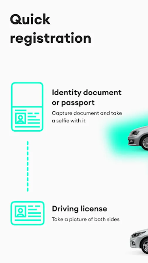 You can find a car near you by searching the map directly in the app. To start your ride, please push the button. When you're done, just leave a car in the parking spot marked green.