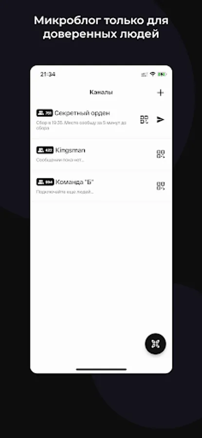 Cheops - microblogging for trusted people! The service allows you to send short messages using PUSH notifications. Create channels, invite people you trust! They, in turn, can invite other people to your channel, according to the so-called pyramid system. It is impossible to read the channel from the outside, because to activate the invitation, you need to scan the QR code, after which the invitation will burn out.