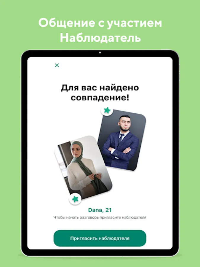 Для соблюдения требований шариата в общении, необходимо присутствие третьего человека со стороны девушки, который наблюдает за общением парня и девушки, сохраняя дозволенность данного общения. Если парень и девушка образовали пару, девушка должна поделиться с наблюдателем ссылкой на их чат, чтобы начать диалог. Наблюдатель при необходимости может предупредить участников чата, или может остановить чат, выйдя из него.