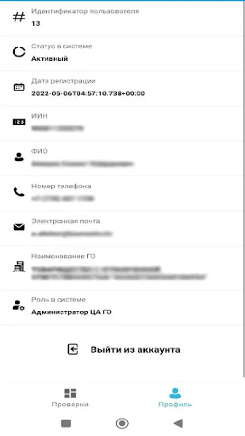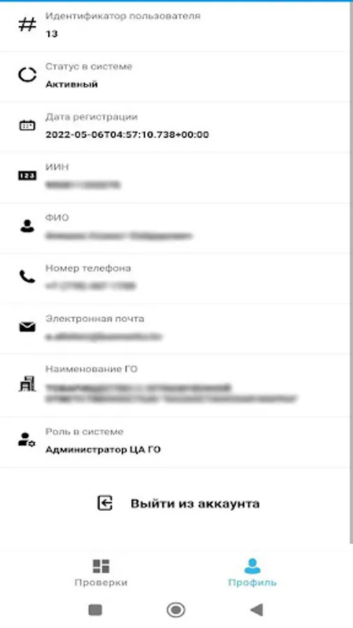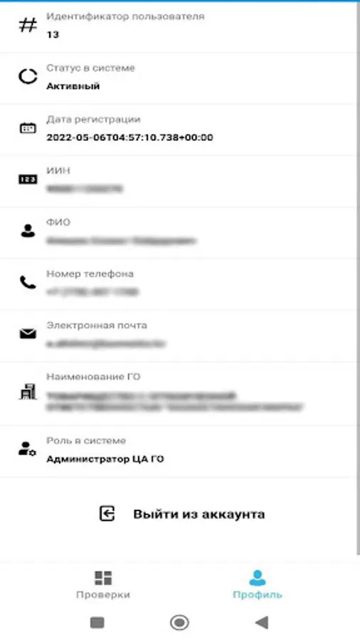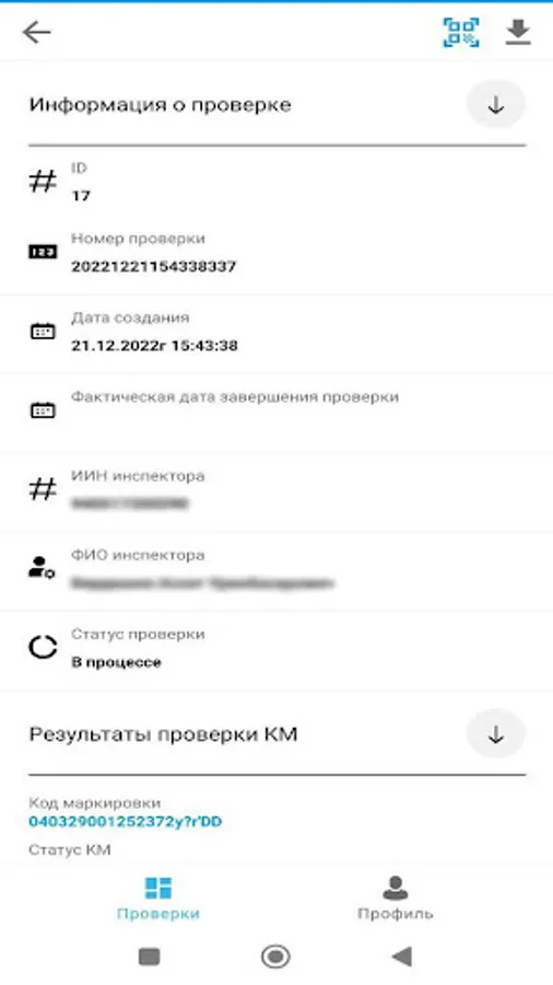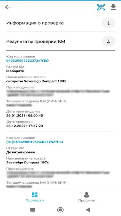 The application allows you to check organizations by scanning product identification tools (code DATAMATRIX).