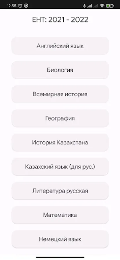 An application for testing the knowledge of students to pass the final entrance exams to higher educational institutions of Kazakhstan. Testing takes place online via the Internet (an Internet connection is required for work). Huge database of questions that are updated every day. The application has 14 subjects for testing: History of Kazakhstan, Biology, Native Language and Literature, Mathematics, Mathematical Literacy, Chemistry, Geography, World History, Reading Literacy, German, French, Man and Law, Physics and English.