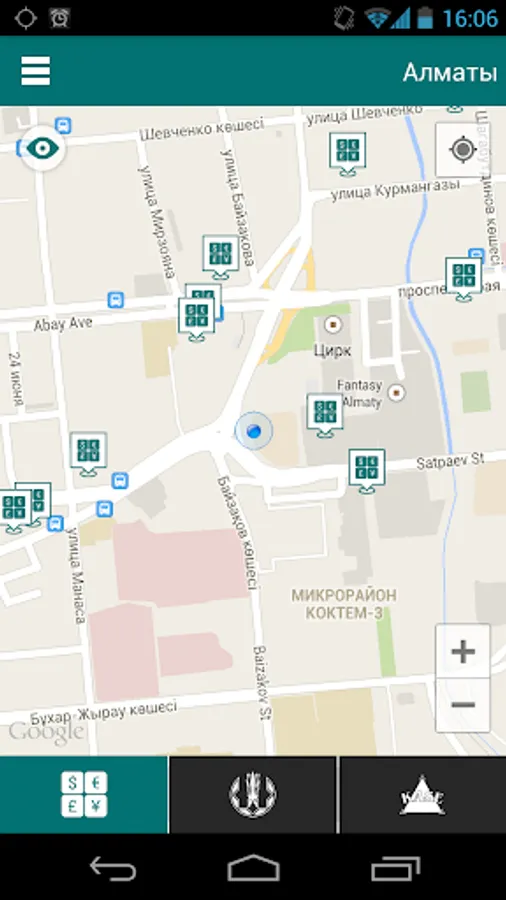 Exchange offices in the cities: Almaty, Astana, Karaganda, Ust-Kamenogorsk, Semey, Aktau, Atyrau, Aktobe, Kostanay, Pavlodar and others.