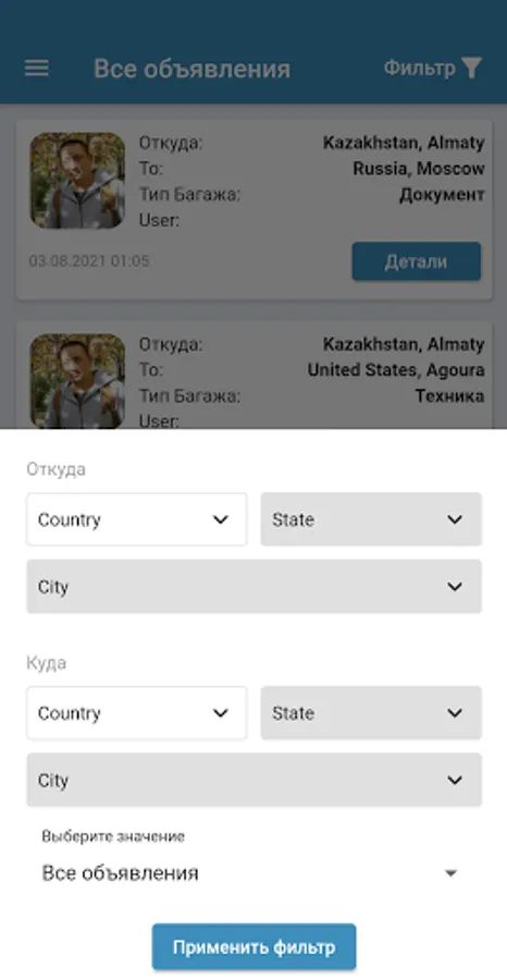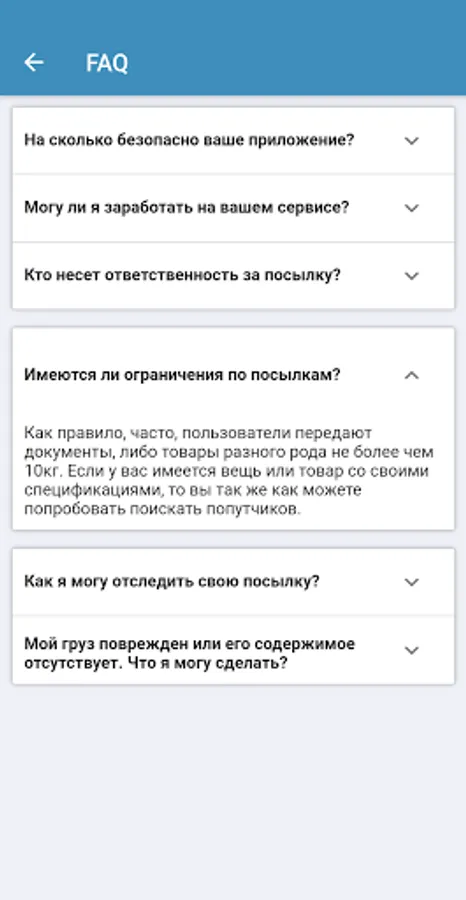 An easy solution to solve problem of sending from hand to hand. Quick search and direct communication with the person who is ready to hand over the package or document.