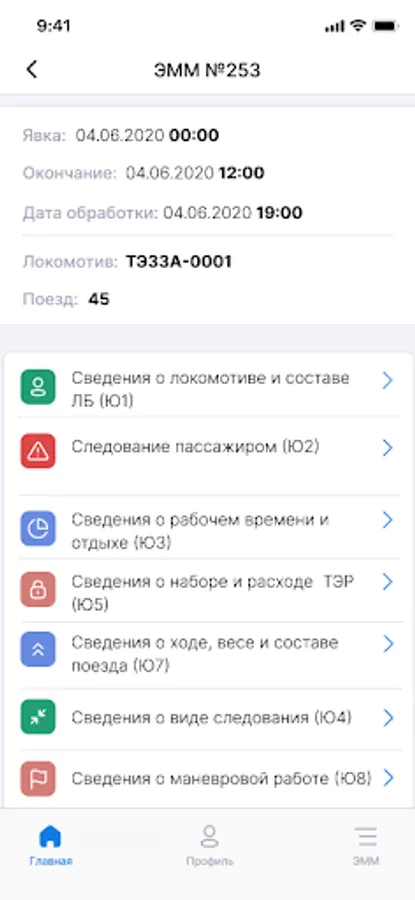 Digital assistant for employees of locomotive crews for viewing data on electronic routes of the driver, monitoring the status of processing. Viewing data on the following sections of the driver's electronic route: