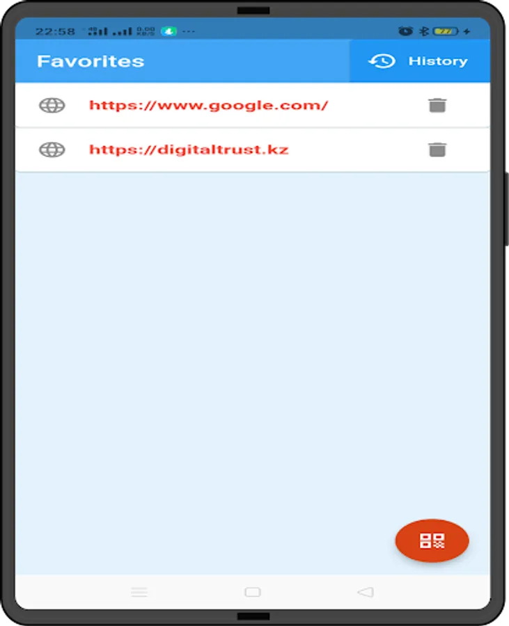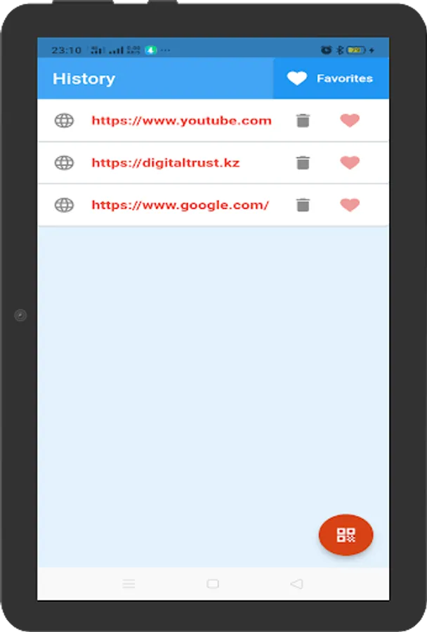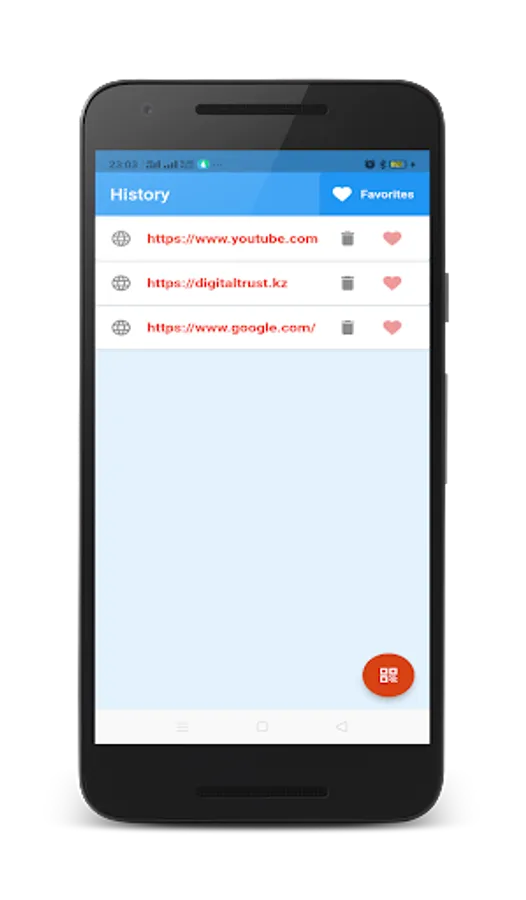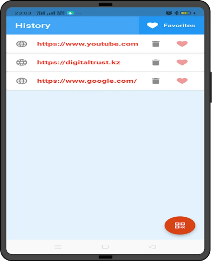Simple QR Code Scanner app is very very easy to use. just click on fav button task on the main screen and scan the code you want to scan and It will automatically start scanning saves in your scan history. Later if you want, you can select the scanned link to you favorites list.