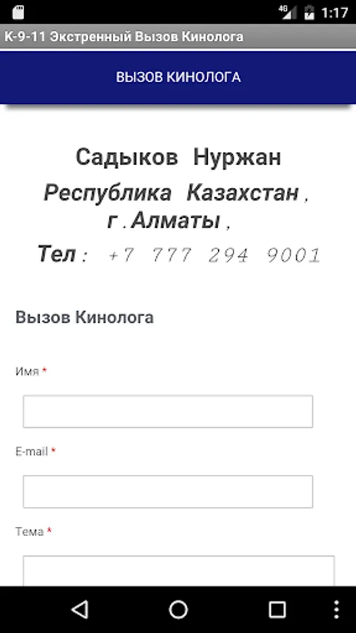K-9-11 service emergency call Kinolog in Almaty, Republic of Kazakhstan