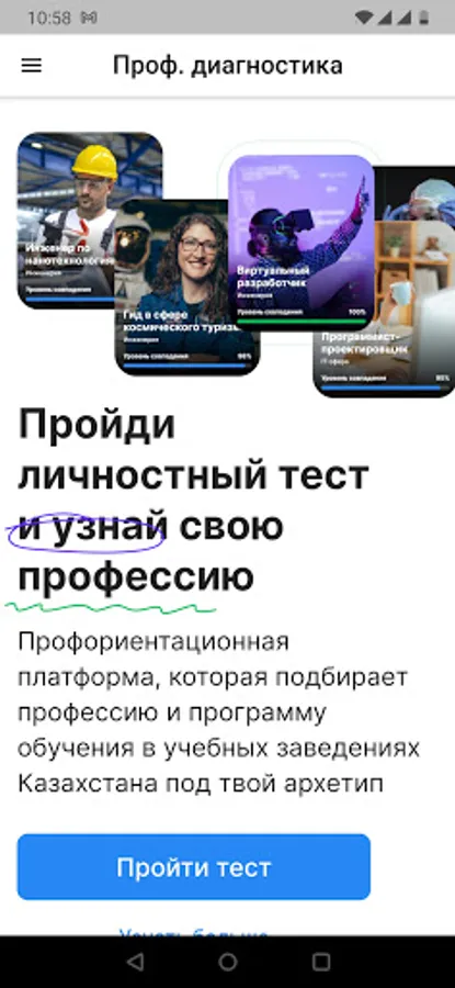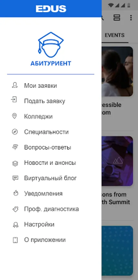 This mobile application helps applicants and graduates of 9th and 11th grade schools to study in detail various specialties and qualifications of technical and vocational education, their availability in selected colleges, apply for admission online, and also undergo various specialized testing in order to assessment and definition of their capabilities and abilities.