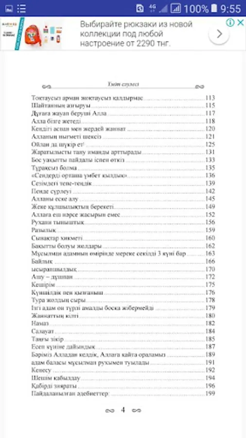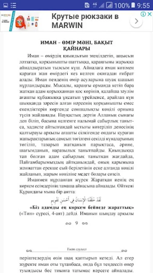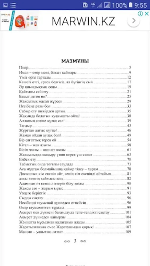 Belgilі қоғам жнашыры Қайрат Базарбайұлы Махметовтың қолдауымен жарық көрген бұл еңбекте оқырманға ой саларлық рухани астарлы бірқатар мазмұнды, өнегелі тақырыптар топтастырылған. Аят-хадистердің астар -лы мәні түсіндіріліп, күнделікті өмірге қажетті ақыл-кіестер мен мұсылмандық ізгі қасеттер tours сөз болады. Kitap barsha oyyrman қауымға арналған.