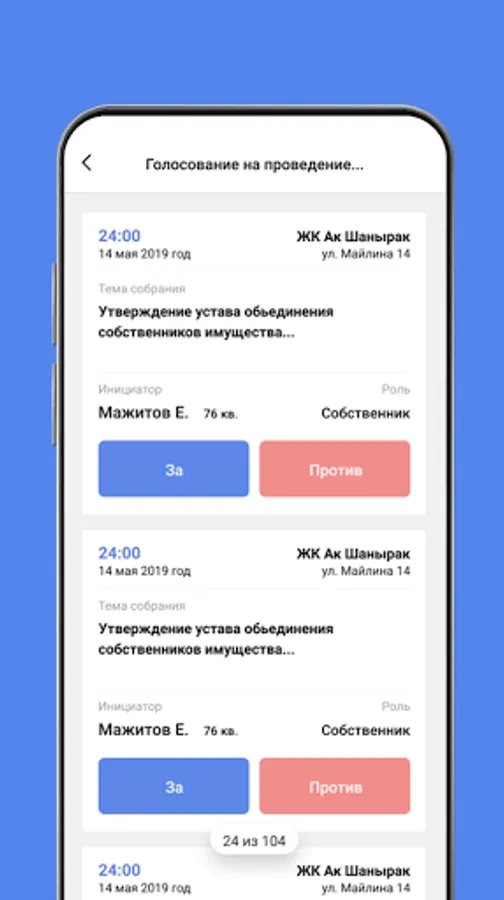 The “Meetings” module automates the process of holding a meeting thanks to electronic voting through EDS, as well as live voting of owners through the Management Bodies, which allows you to comfortably resolve issues related to the provision of utility services.