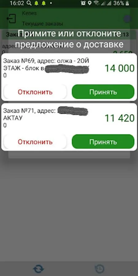 As soon as the delivery order is accepted, the driver instantly receives a notification of the new order. At this time, the courier accepts or rejects the order.