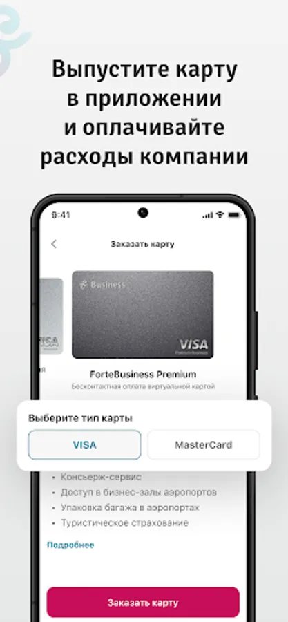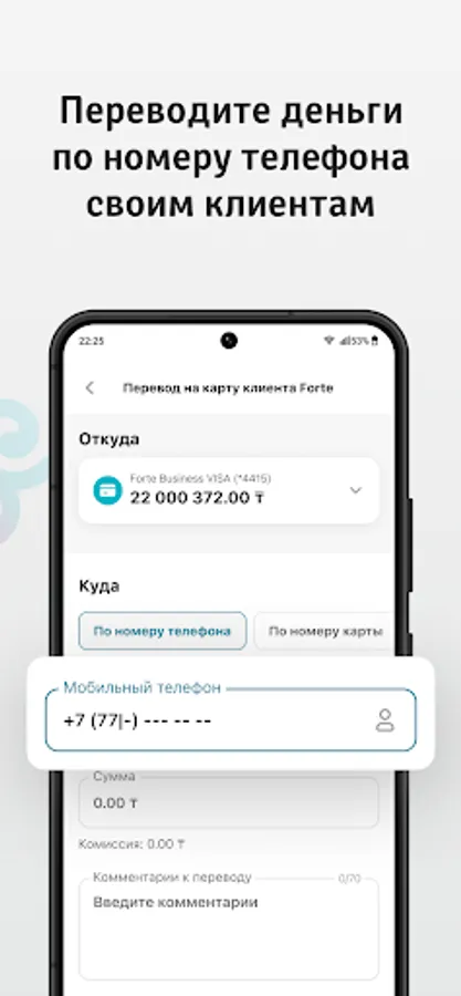 • Issue a digital card directly from the application, as well as transfer money by card number (P2P)