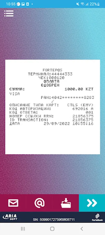 2. Enter virtual serial number (provided by ForteBank)