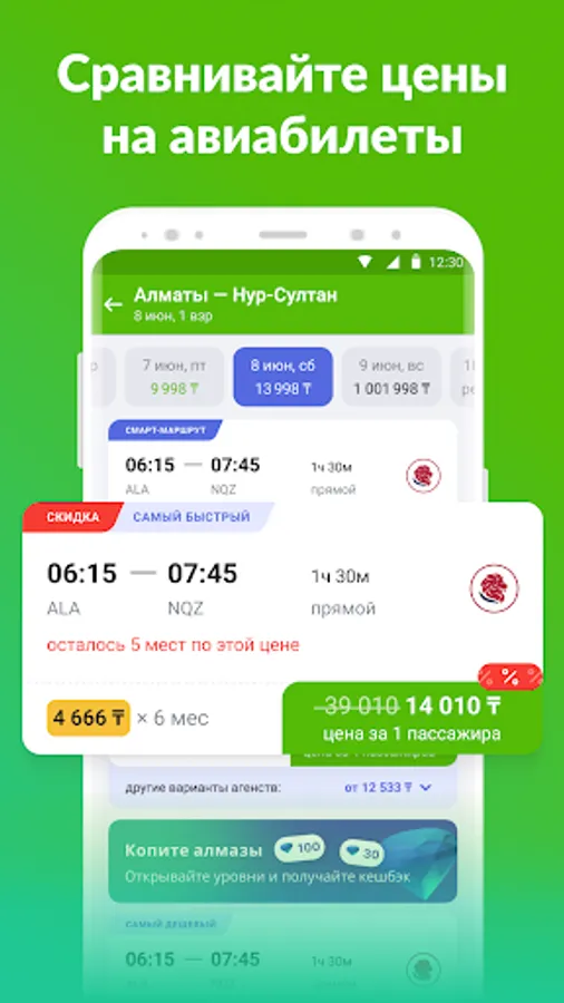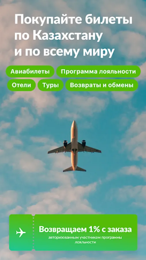 Our application will help you find tickets for flights of more than 1000 airlines - FlyArystan (Fly Arystan), Air Astana (Air Astana), Scat (Scat), Qazaq Air (Kazakh Air), Aeroflot, Pobeda, Belavia (Belavia), Lufthansa (Lufthansa), KLM, Turkish Airlines (Turkish Airlines).